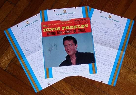 - El 45 rpm single de “Hound Dog” firmado para mí por el