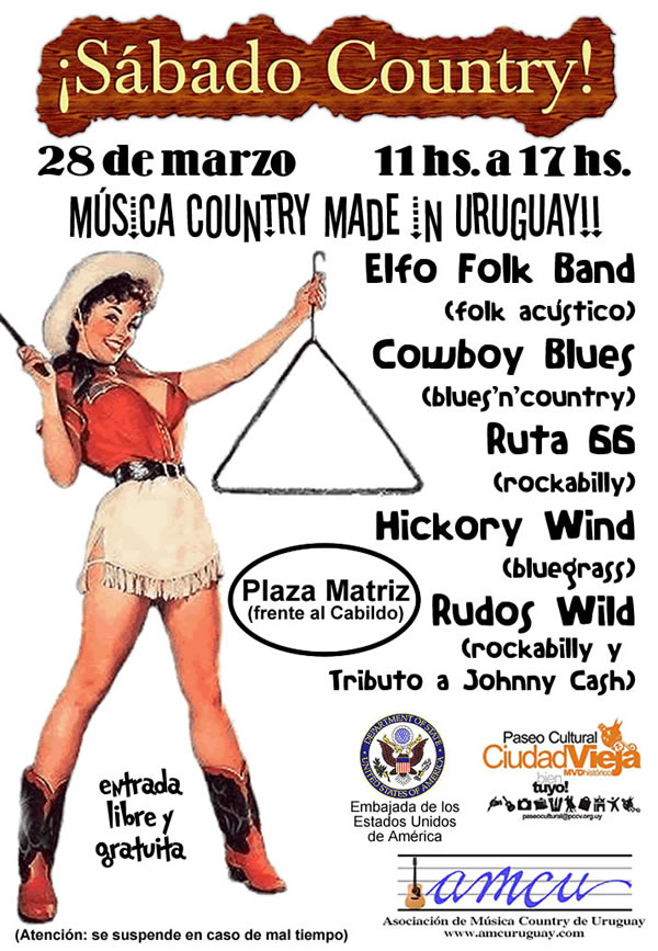 muy country en la Sala Adela Retra del SODRE, en Montevideo, el 11 de marzo